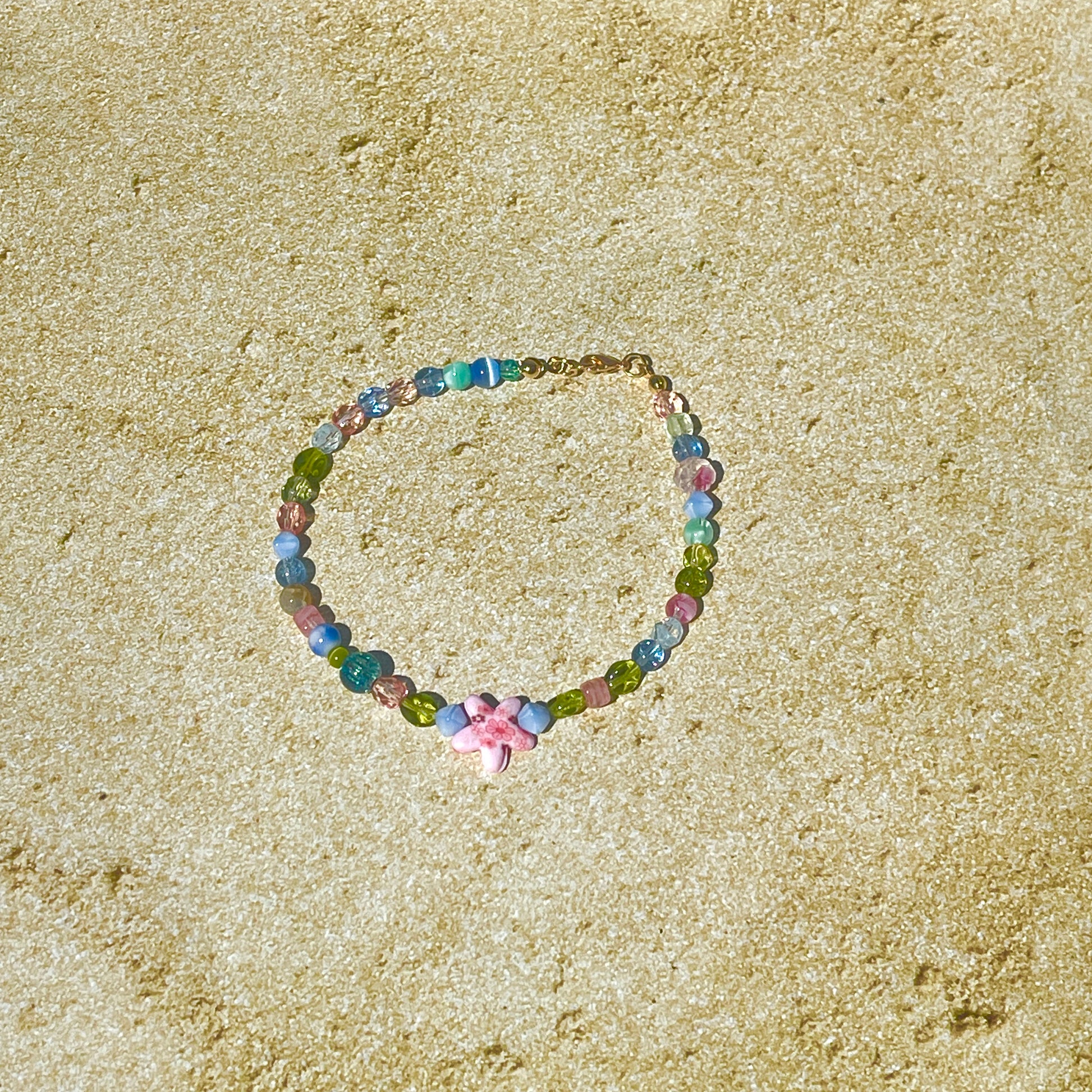 Dress up your ankle with our Sea Star Anklet, featuring colorful glass beads and a charming sea star. Perfect for beach lovers and those who want to add a touch of whimsy to their outfit!